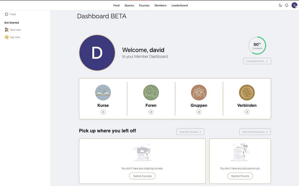 This is a clone of one of my client’s websites. And yes, that’s a BuddyBoss dashboard (built with Elementor and the BuddyBoss theme) showing up within the FluentCommunity framework. Now, in actual practice, you’re not likely to continue using Elementor or the BuddyBoss Theme if you convert to FluentCommunity, but it goes to show you how this can work.
