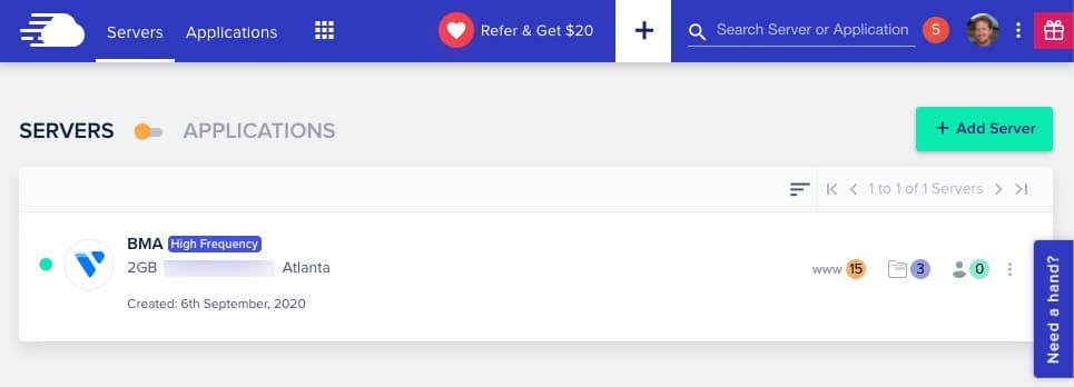 You can run as many servers as you want from the same Cloudways account. Each server is added to your bill. Most of you will have just one. But, if you ever set up a site or app that you wanted on it’s own server, you could easily do that and manage it all from one account.