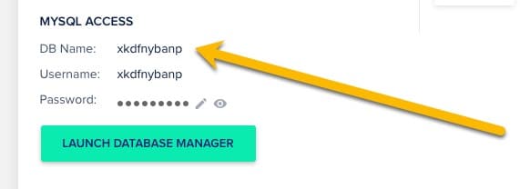 For your database name, once again you can get this from your Cloudways account on the same screen: