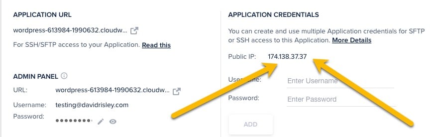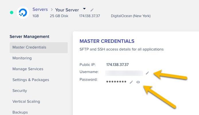 Your new server is going to have it’s own IP address and your username/password for server access is auto-generated.
