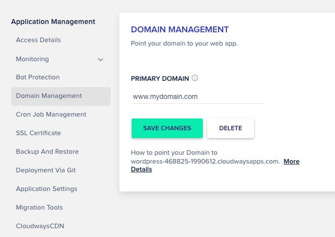 To do this, to go your app settings in Cloudways and go to “Domain Management”. You then need to set your “Primary Domain”.