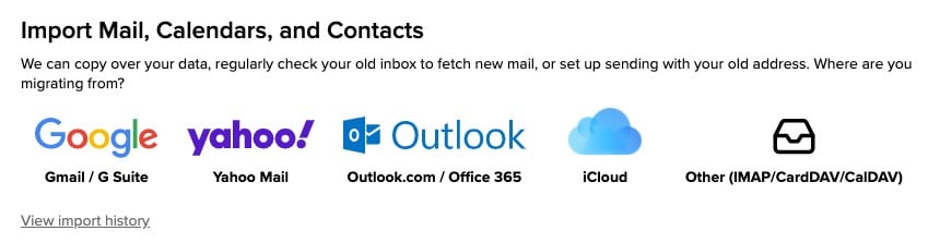 To move your email from your web host, you’ll likely need to use the “Other” option. Specifically, IMAP. You will enter your email address and password (essentially your login information to your existing email account) and Fastmail will log in and download all your email. Folders and all.