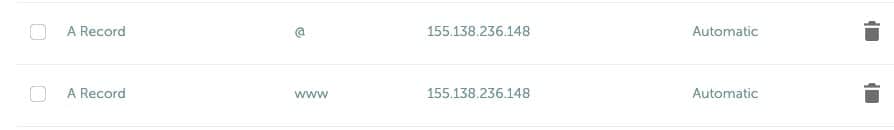 You’ll see one A record with the host set to “@” (which is the root) and the other for “www”. This way it will route both www and non-www version of the domain to the IP address.
