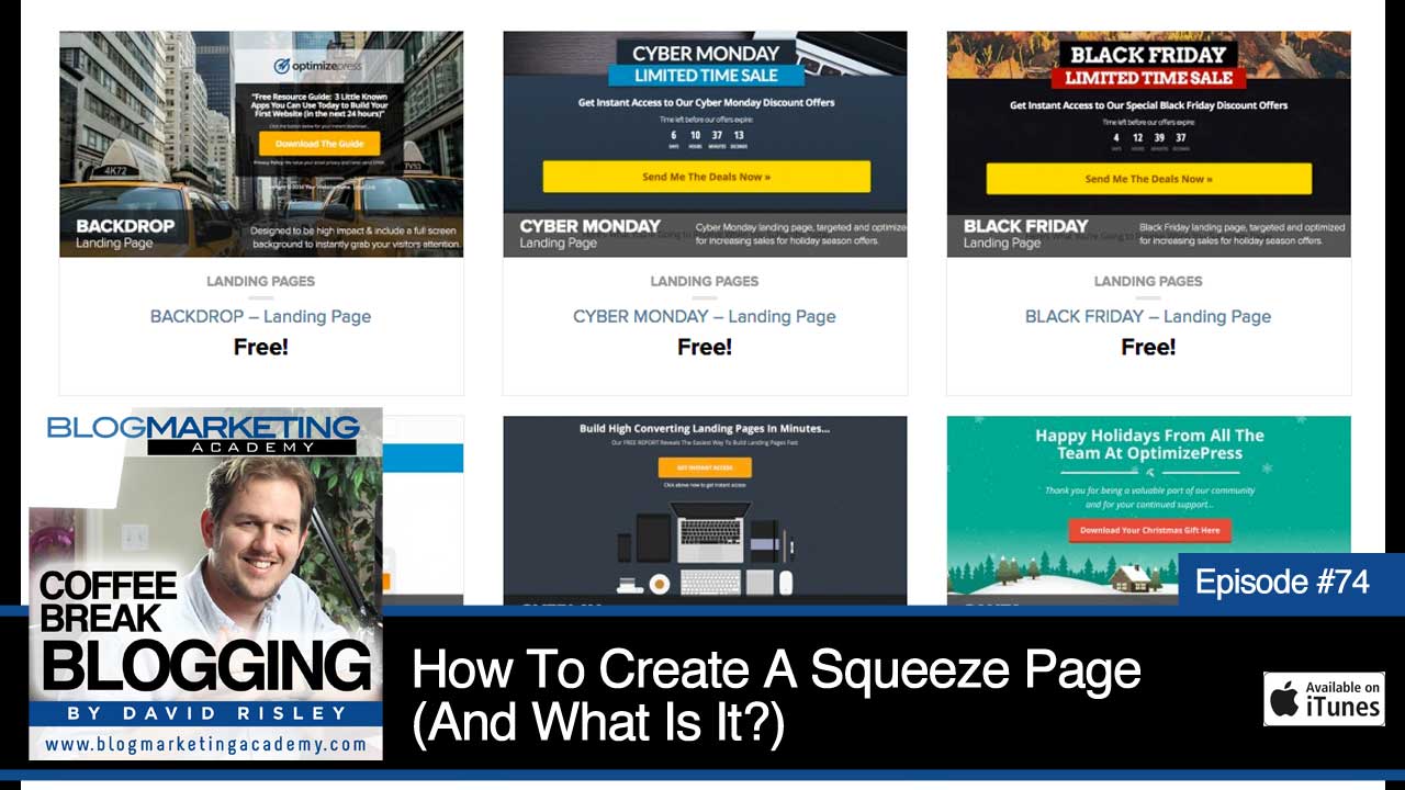 Now, for those of you who already know what these stuff are; I just want you to bear with me. I mean, understand that the Coffee Break Blogging podcast is essentially a course that goes from beginning to end in creating an online business and there are people of all experience levels that are listening. And I know that not everybody is fully familiar with what a squeeze page is or the different elements that go on it and there might be some questions related to squeeze pages so we are going to go ahead and just talk about this topic in this episode so that we do not leave anybody out.